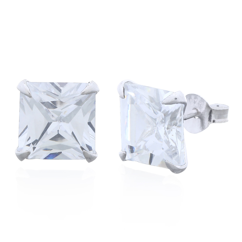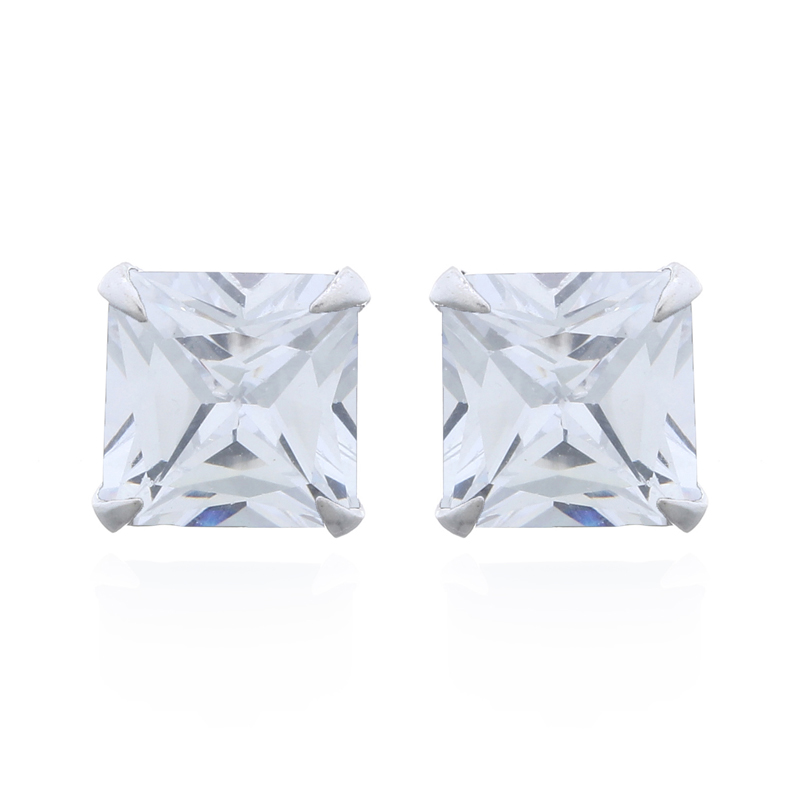 Square bright sparkling Cubic Zirconia Ear Stud earring brushing up the look with a small shining jewelry that has a great brilliantly shining effect. Set in Sterling Silver secured with butterfly fastening these Studs are versatile and all occasions earrings that add the finishing touch to any outfit.
