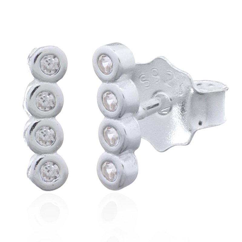 These curved row stud earrings, adorned with clear CZ stones, offer a chic and stylish look. Their elegant design enhances any outfit, making them a perfect choice for everyday wear. Include these stunning pieces in your inventory for customers who appreciate timeless beauty!