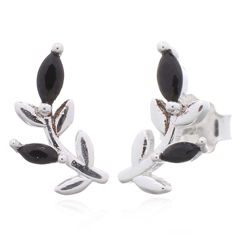 With a curvy leaf design embellished with black cubic zirconia, these studs offer a sophisticated twist on nature-inspired jewelry. They appeal to customers looking for unique and stylish pieces.