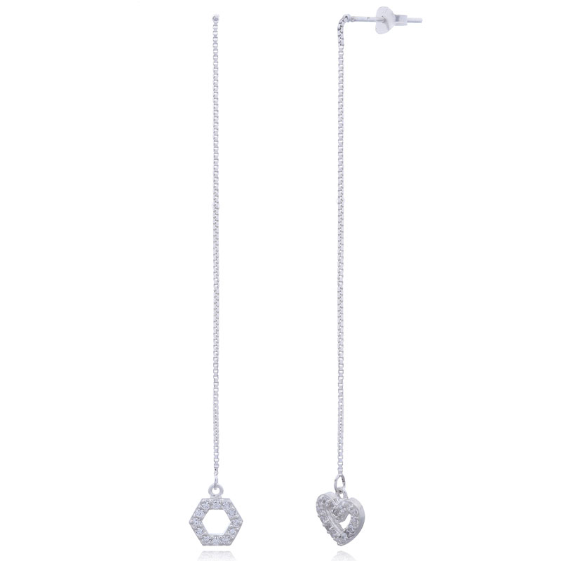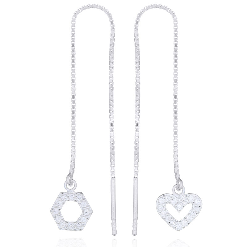These box threaders combine hexagonal and heart designs, offering a unique take on traditional threader earrings. Their playful and modern aesthetic makes them perfect for customers seeking unique pieces. Retailers can highlight their innovative style to attract buyers.