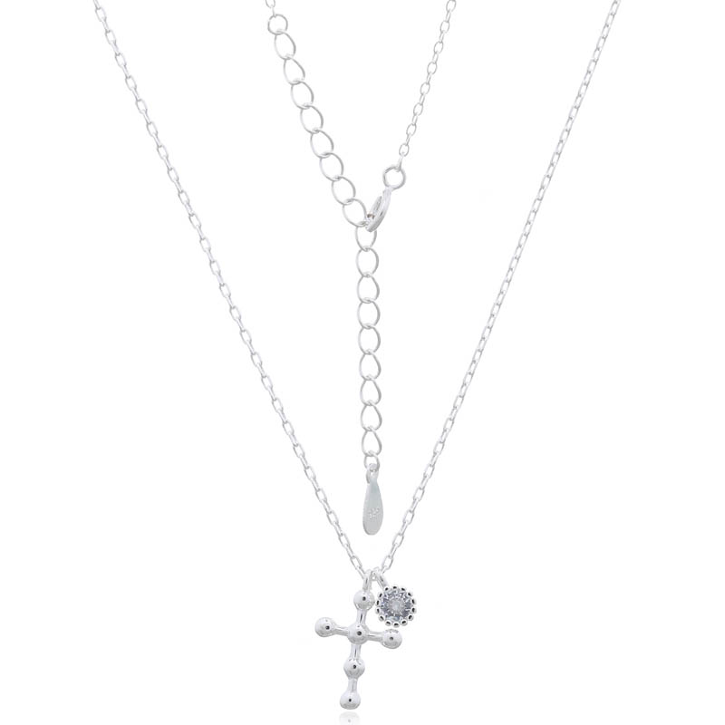 This necklace pairs a delicate CZ white flower with a cross charm, offering a meaningful, elegant design. Perfect for retailers targeting customers who appreciate both spiritual and decorative elements in their jewelry.