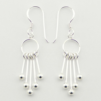 Five cute sticks embellished with stamped high polished 925 silver spheres dangle on a ring that is flexibly connected to the French wires creating daily wear silver Chandelier earrings. Women love this type of Sterling Silver earrings that add a brilliant shine to their wardrobe and follow their movements in a fascinating way. Flattering their features with a silver jewelry that triggers an eye-catching effect is easily achieved wearing these superbly hand crafted 925 silver wirework earrings.
