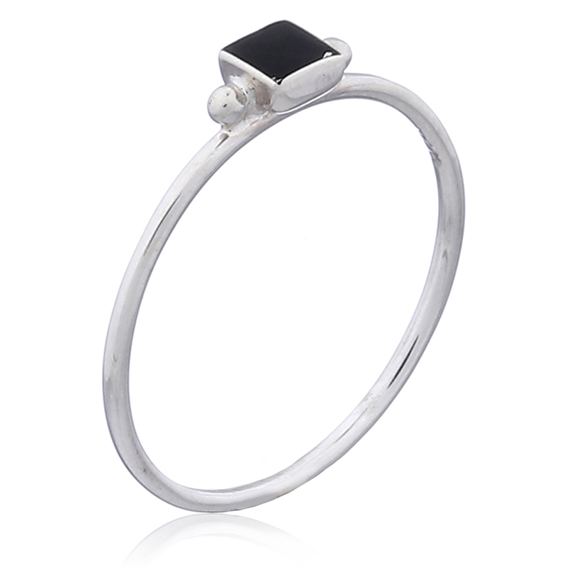 Dainty black square stone stack ring in sterling silver provides a sleek, contemporary look. Ideal for stylish collections. Enjoy factory-direct pricing for improved profit margins.