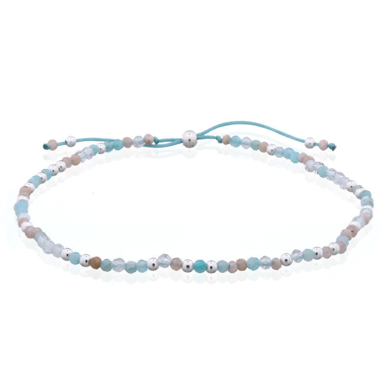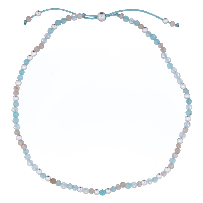 Dainty multi-colored stones are artfully combined with silver beads in this delightful polyester bracelet. Its vibrant design allows for versatile styling, making it a favorite among customers who enjoy mixing and matching. Enrich your selection with this charming piece!