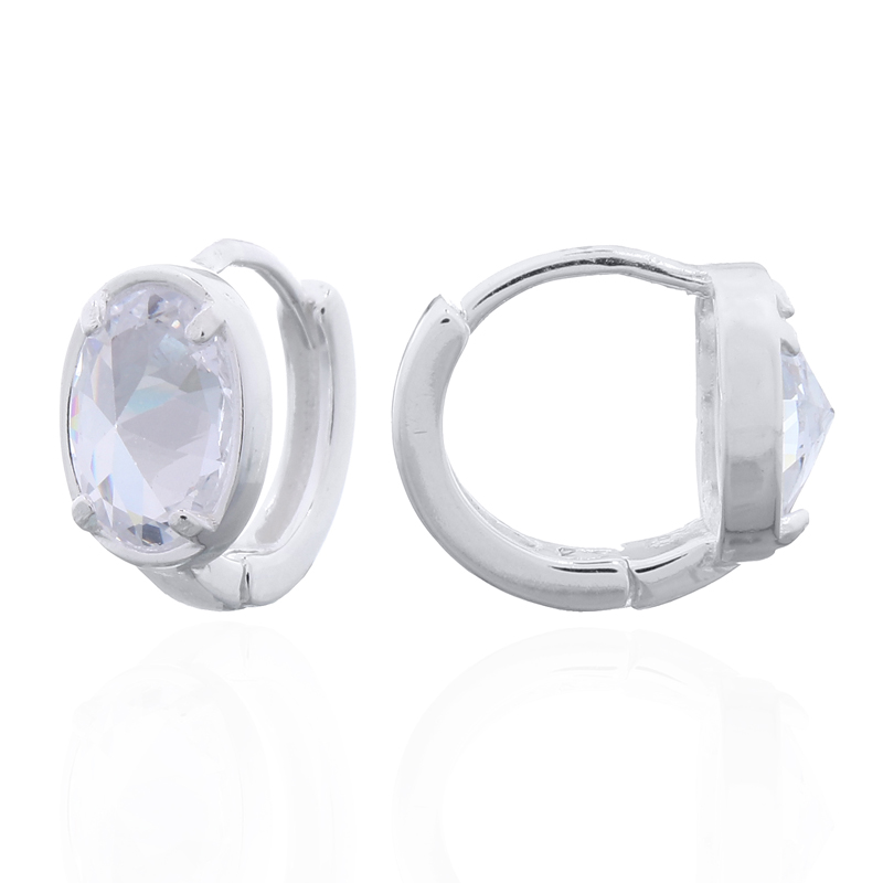These small sterling silver hoops showcase a sparkling oval CZ, combining classic elegance with modern style. Perfect for everyday wear or special occasions, they offer versatile charm that complements any look.
