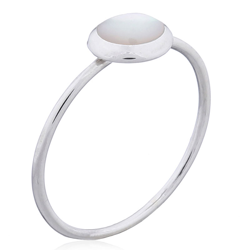Mother of Pearl delicately placed on top of this basic yet gracious sterling silver ring.