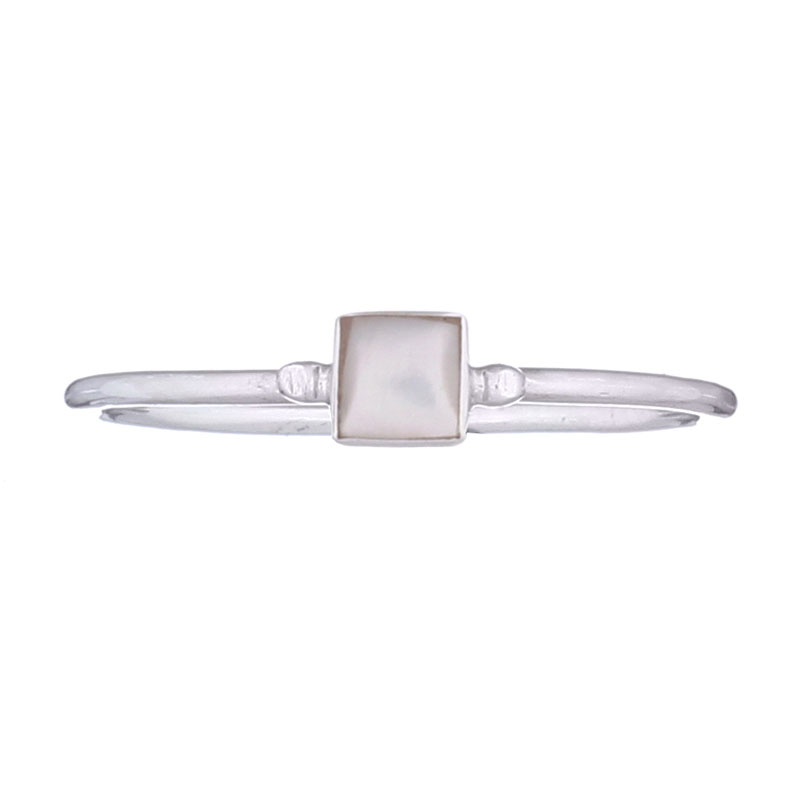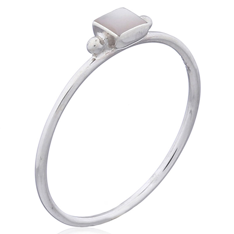 MOP silver ring displays the 4 mm squared shell atop a delicate polished silver band. The iridescent colors of the mother of pearl and the smooth polished surface of the silver combined with high quality craftsmanship create an irresistibly cute shell ring which can be worn daily and with many types of outfits. Shell ring available in the most common sizes at an accessible price.