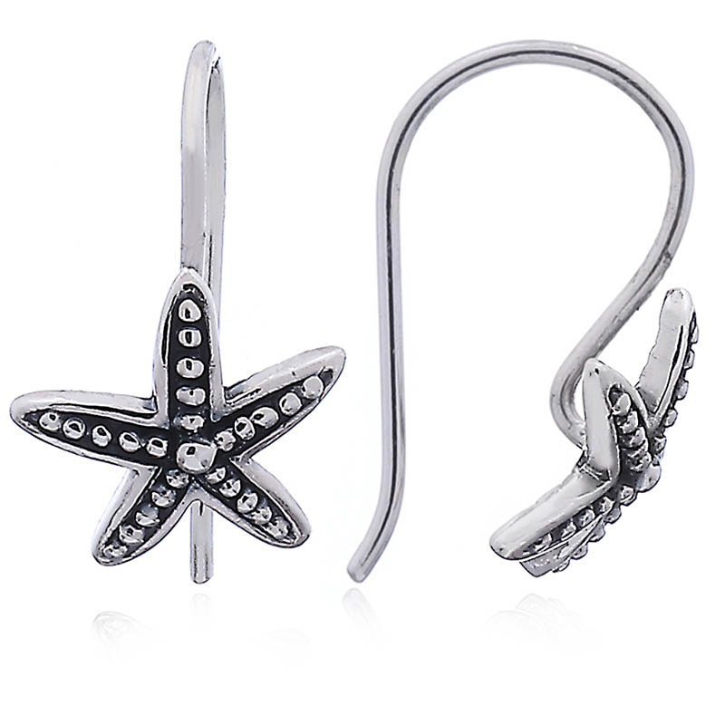 Beautifully crafted silver sea star earrings showing a number of shiny silver dots along the length of each of the 5 arms of the echinoderm. Excellent quality and finish these sea life earrings are a great investment.