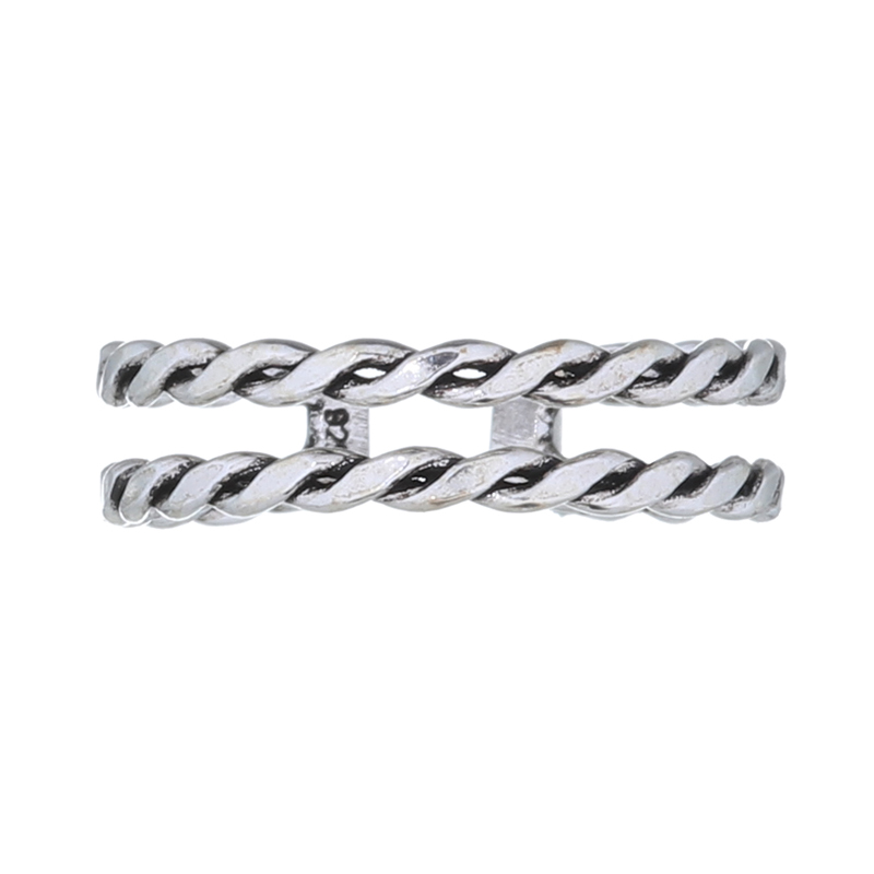 Open band midi ring made in polished sterling silver displays 2 parallel bands. Each band exhibits a beautiful braided work uniting at the bottom. Affordable and beautiful knuckle ring available in 3 sizes.