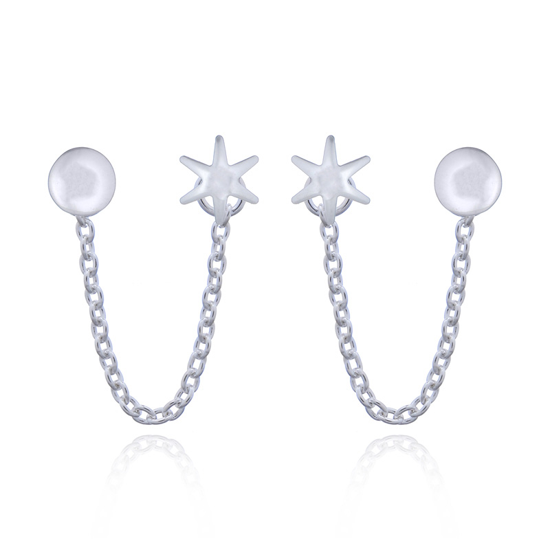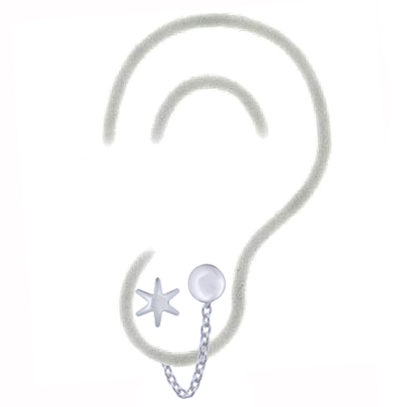 Very trendy and super cute full moon paired with shining shimmering star double piercing 925 stud earrings.