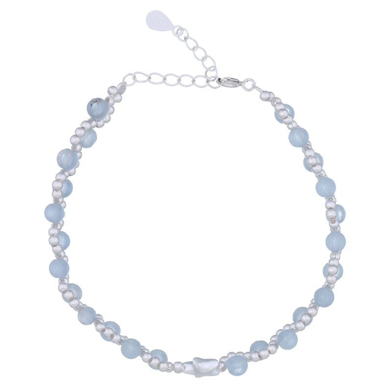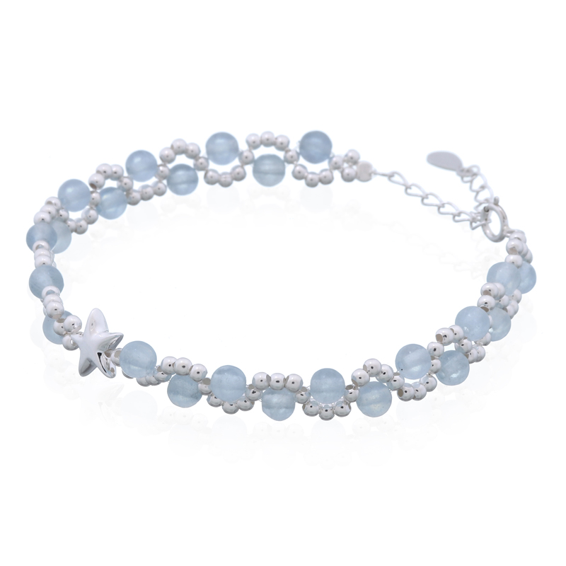 Elevate your inventory with this Silver Bracelet with Aquamarine and Star Charm, featuring vibrant aquamarine beads, shimmering silver beads, and a charming star accent. A versatile accessory that appeals to customers seeking both style and serenity in their jewelry.(Heart charm dimensions 7 x 7 x 3 mm).
