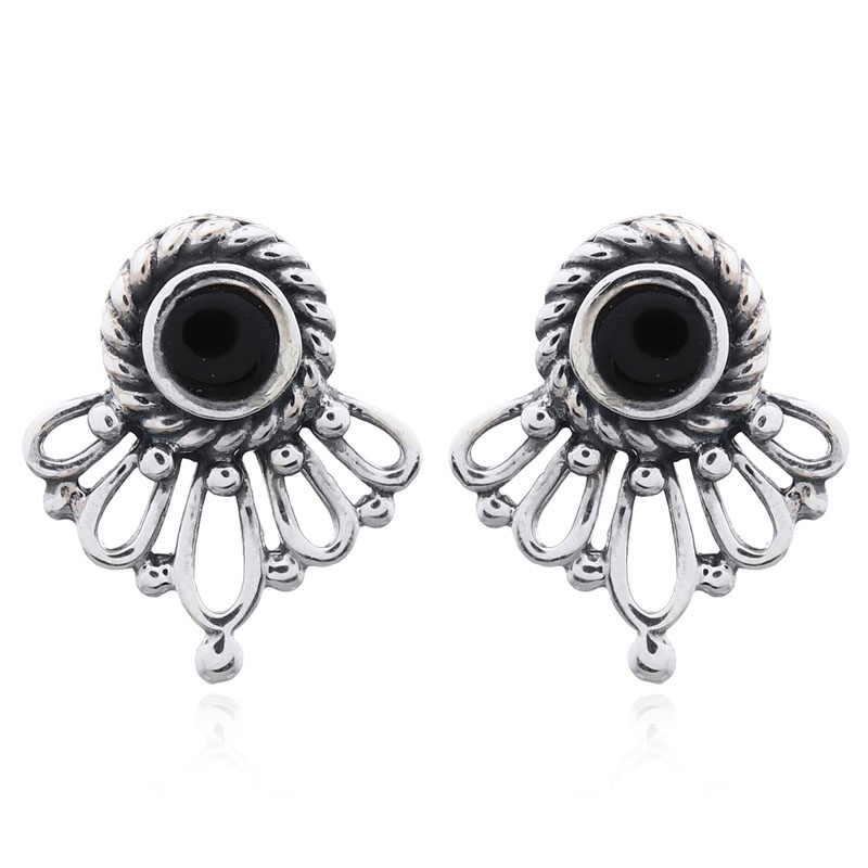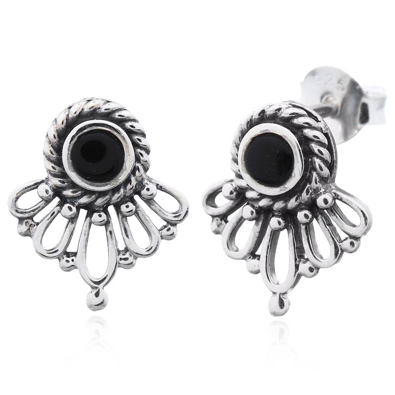 These stunning stud earrings showcase a bold black stone in a chic bohemian style. Perfect for retailers, they add a touch of drama and elegance, making them ideal for customers who love to express their individuality through striking accessories.