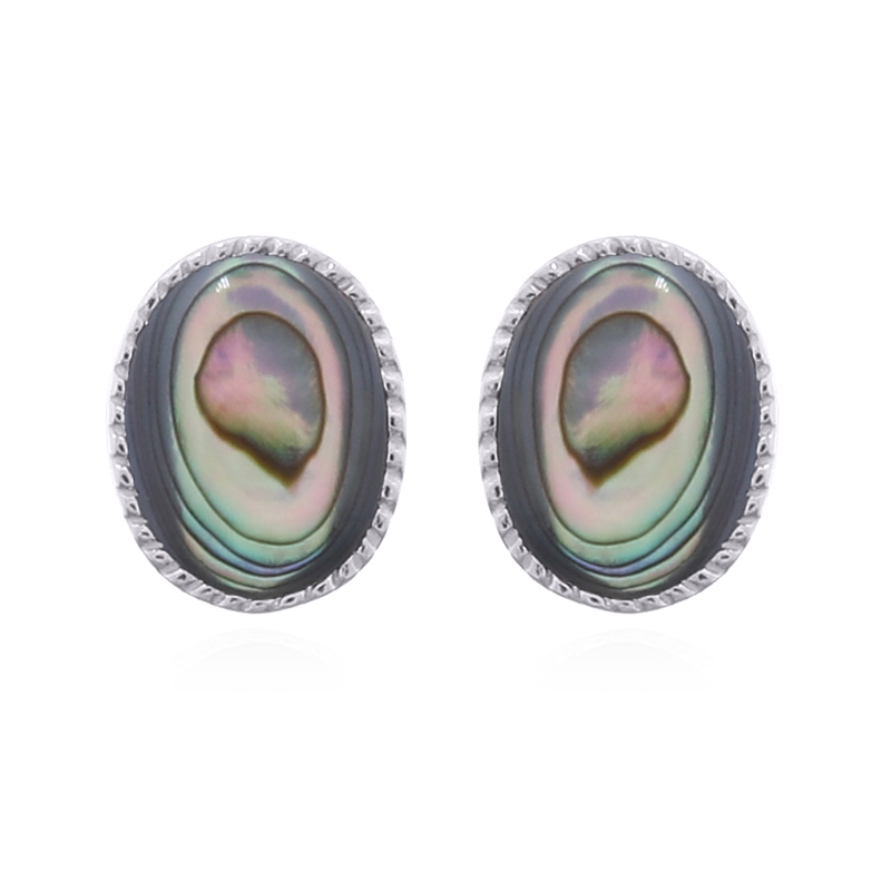 These stud earrings feature oval-shaped abalone shells set in smooth, serrated-edge 925 sterling silver bezels. Their sophisticated design offers retailers a unique blend of natural beauty and refined craftsmanship, perfect for customers seeking timeless statement pieces.