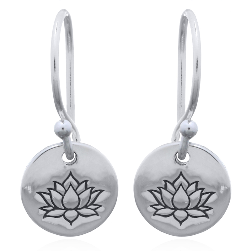 These elegantly engraved lotus disc earrings are perfect for adding a touch of sophistication to any outfit. Their unique design appeals to customers who appreciate meaningful symbols and timeless style in their jewelry.