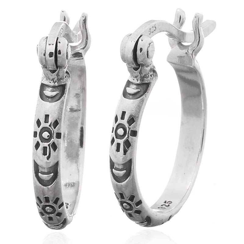 Add a mystical touch to your inventory with these engraved sun and moon hoop earrings. Their enchanting design symbolizes balance and harmony, attracting customers who appreciate spiritual and meaningful pieces. These earrings are sure to become a beloved favorite among jewelry lovers.