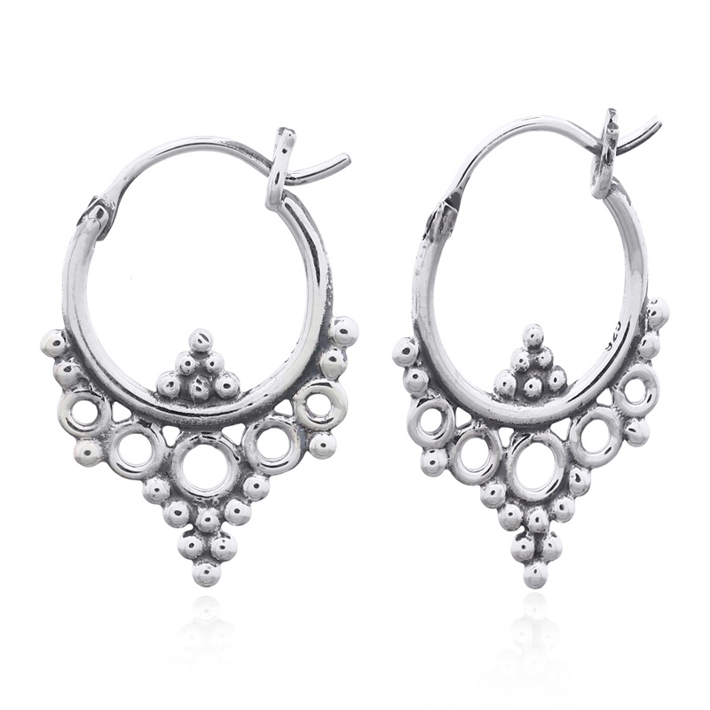 These ethnic style boho earrings in 925 silver offer a unique and intricate design, perfect for customers seeking jewelry with a cultural and artistic flair. Their bold and detailed style adds character to any collection. Maximize your profits with factory pricing and unique designs.