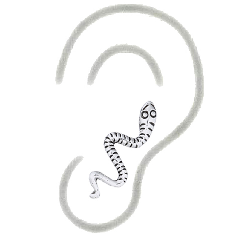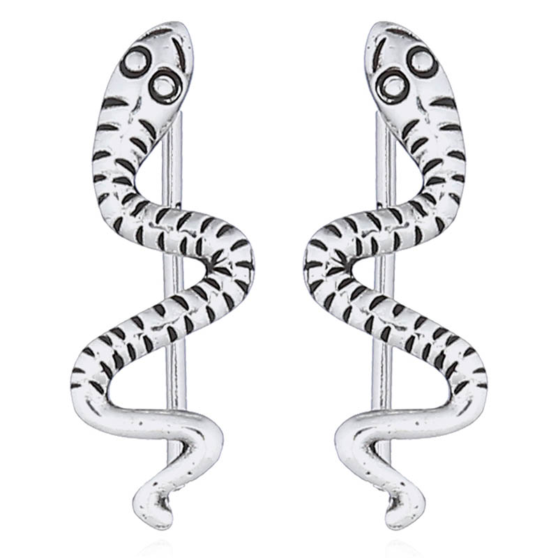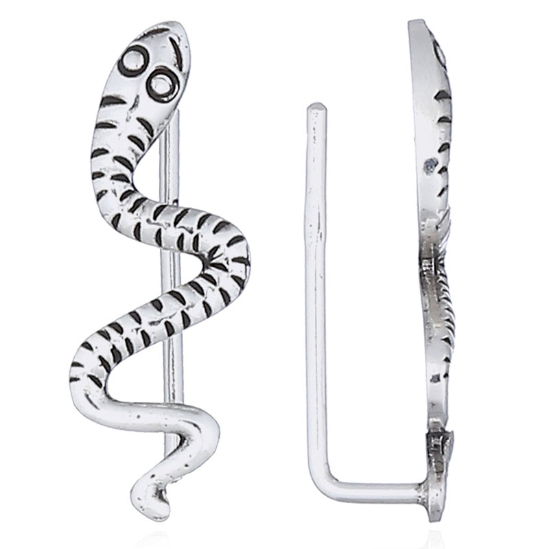 Exciting ornate 925 Sterling Silver snake Earline earrings add a mysterious touch a woman look when the two snakes are fastened to the ears and display their beautiful ornamented skin and the fine tapering long zigzag shaped body. This snake is beautifully caught in Hallmarked 925 silver applied antique finish accentuates the recessed parts of the skin’s pattern greatly. Detailed head and fine curl at the tail complete this lightweight gorgeous silver jewelry adding an exotic touch to the features.