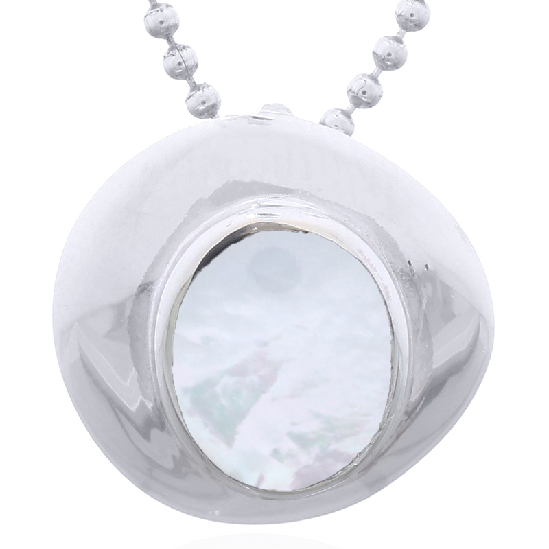 This 925 sterling silver pendant showcases a smooth triangular form with bezel-set oval mother of pearl inlay and discreet hidden bail for clean elegance. Ideal for retailers offering premium, oceanic-inspired pieces that captivate customers with subtle color play.