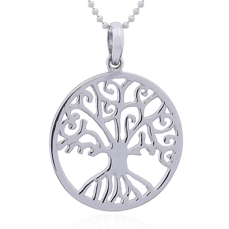 This exquisite 925 Sterling Silver Pendant features the figure of the Tree of Life this time showcasing slender branches that do not stop and turn curling up in all directions. This movement contrasts with the almost straight roots emerging from the trunk and attached to a silver ring that surrounds the tree creating a symbol which represents the union of earth sky and underworld.