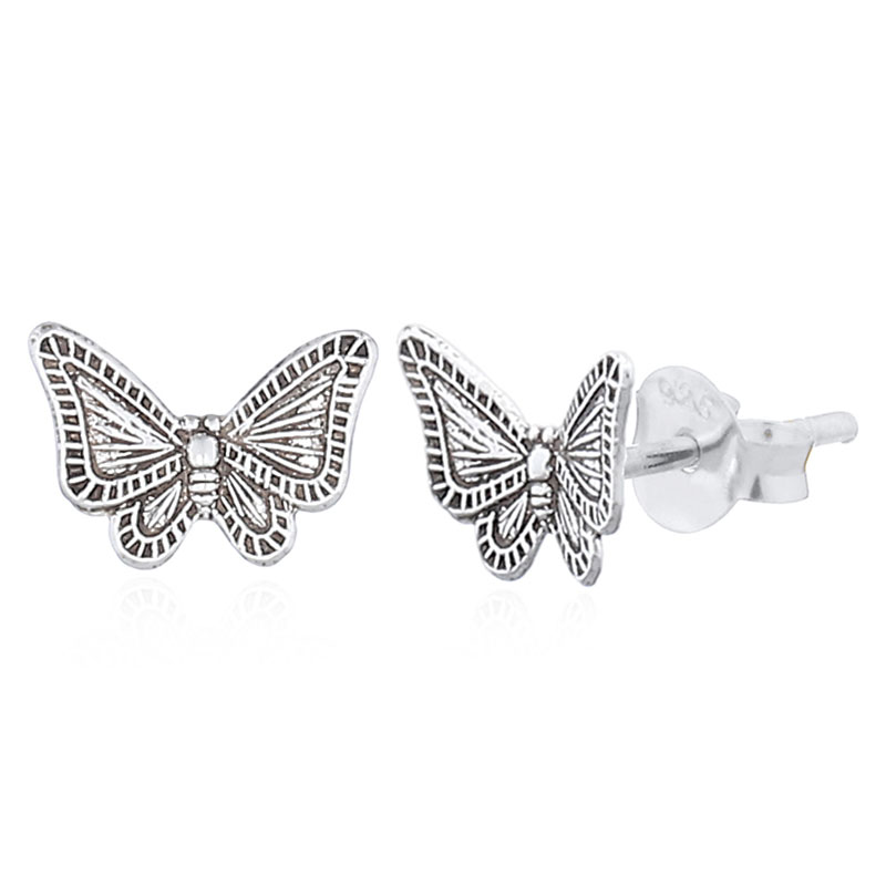 The wings and body of the butterflies that make up this beautiful pair of stud earrings display beautiful patterns that resemble those of natural butterflies; enhanced by antiqued and polished sections that provide a touch of realism to the earrings. Very pretty pair of butterfly ear suds in sterling silver at a very affordable price which will be attractive to potential customers.