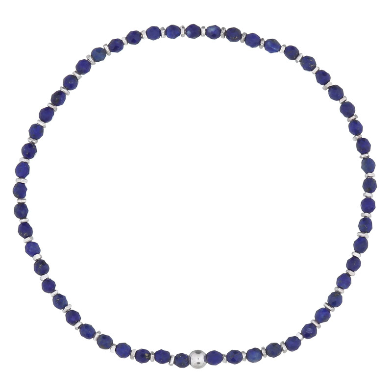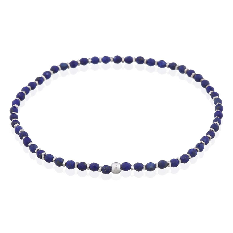 This faceted lapis lazuli stretchable bracelet combines vibrant blue hues with the versatility of sterling silver. Retailers can offer customers a unique piece that enhances both casual and formal looks with ease.