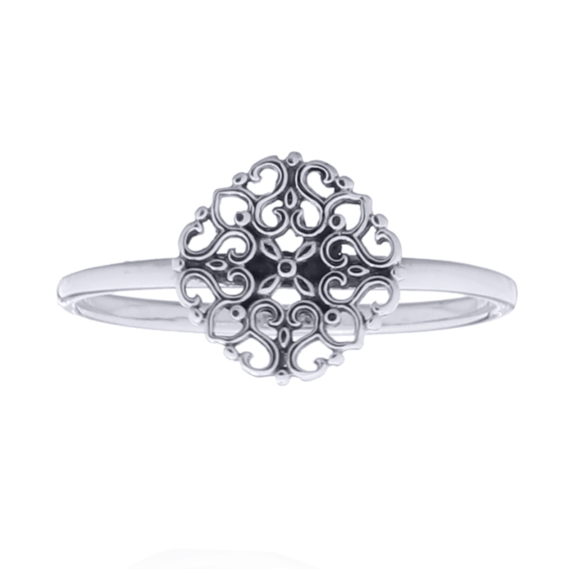The filigree flower layout on this ring is a testament to fine craftsmanship. A beautifully intricate piece that will attract customers seeking unique designs. Benefit from products manufactured in our own facility.