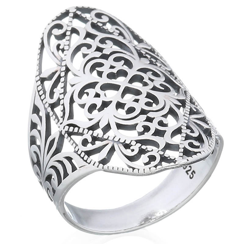 The filigree flower design of this plain ring showcases delicate artistry and timeless elegance. Ideal for retailers wanting to offer handcrafted pieces that resonate with lovers of vintage styles. This ring is perfect for customers seeking refined, feminine touches in their jewelry.