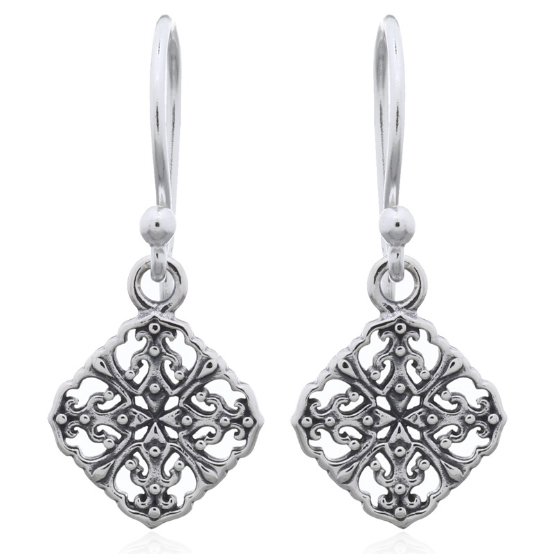 Intricate filigree work in a semi-diamond shape gives these dangle earrings a luxurious and timeless feel. Perfect for customers drawn to vintage-inspired designs, these earrings will make an elegant addition to any retail collection. A true showstopper!
