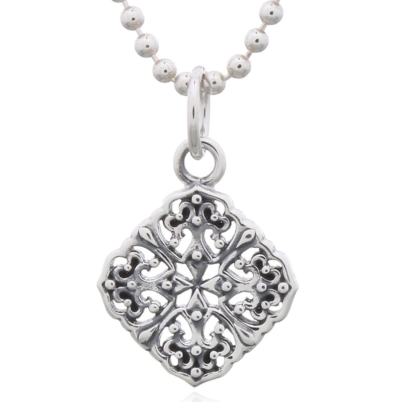 This filigree pendant features a semi-diamond shape, combining elegance with intricate detailing. Retailers can captivate customers seeking sophisticated jewelry that stands out in any collection, enhancing both casual and formal outfits.