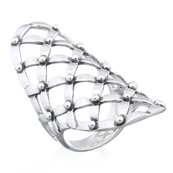 A full finger ring with a fishnet design, this piece is a bold statement accessory. Appeal to your customers with a unique design and enjoy the profit margin advantages from our wholesale prices.