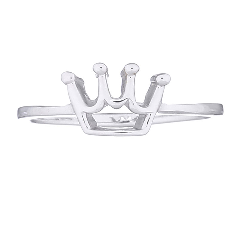 Crown ring made of sterling silver features an flattened representation of a four pointed crown that will sit flush on top of the finger when worn. Crowns are popular symbols as ornaments and as such they this highly polished ring can be an important addition to your jewelry inventory.