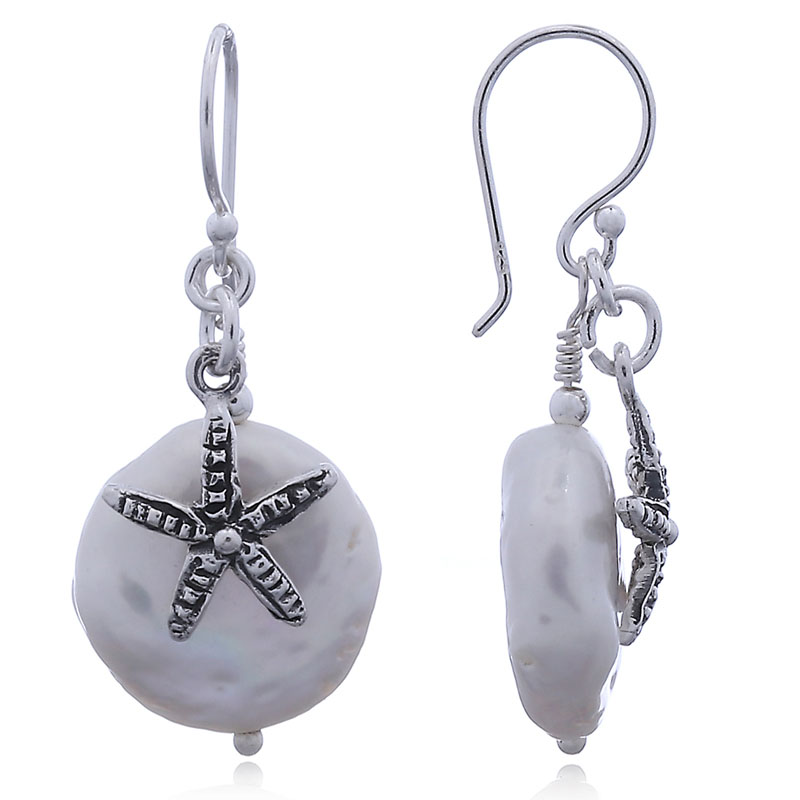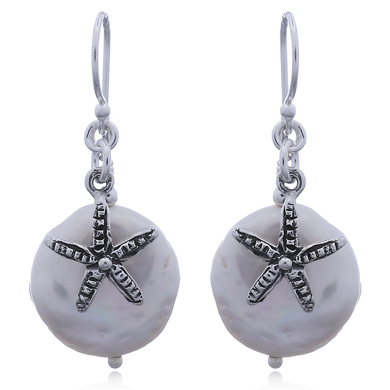 Lovely Freshwater of Pearl with dainty sea star with spines adding more cuteness to this pair of earrings.