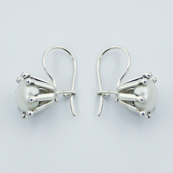 Freshwater Pearl earrings feature Sterling Silver elegant flower cups composed of high polished Hallmarked 925 Ajoure silver welded sticks topped with tiny silver spheres creating the cup shape holding a Freshwater Pearl in its center. Stunning silver pearl jewelry that add a feminine sophisticated flair to its wearer and secured with leverback clasps makes a woman feel safe to not loose her precious pearl earrings.
