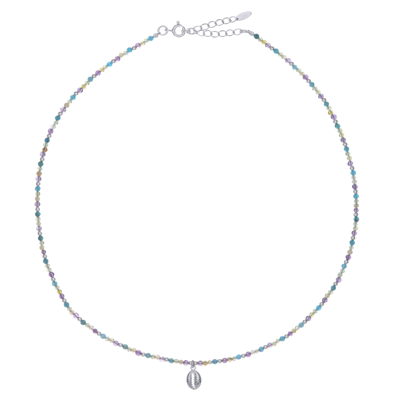 The gemstone bead mix necklace with a 925 silver cowrie shell charm adds a unique and stylish touch. Perfect for making a statement in your store. Enjoy our factory-direct pricing.