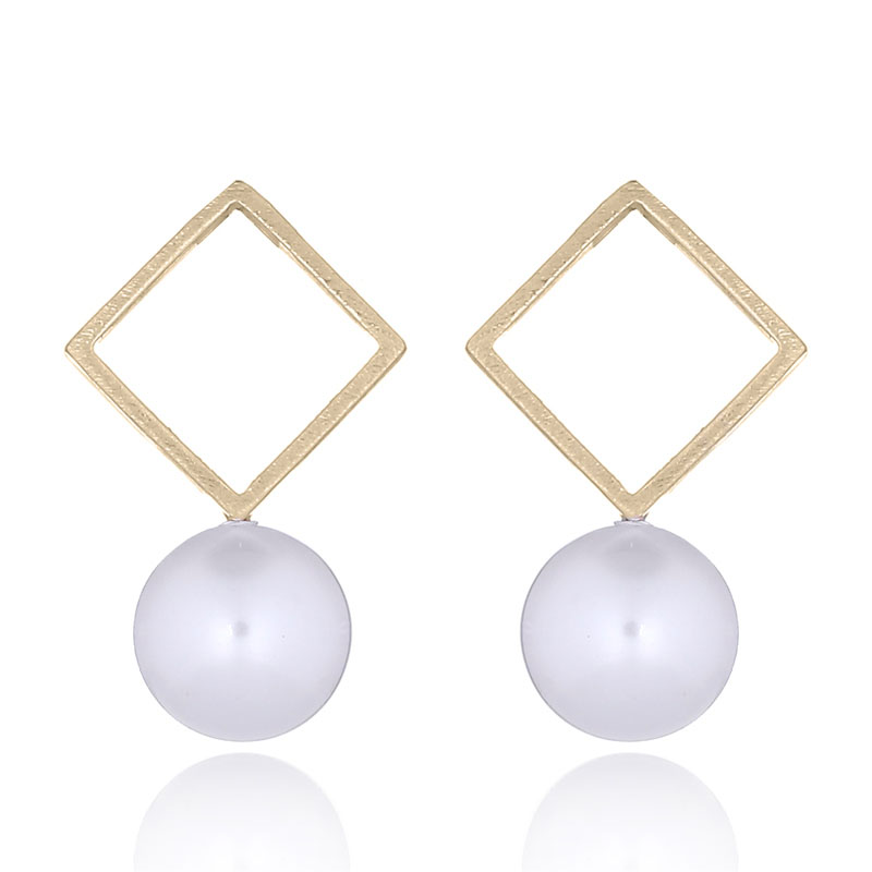 Yellow gold plated 925 silver open square matte finish and Swarovski crystal pearl stud earrings. Pearl diameter approx. 8 mm.