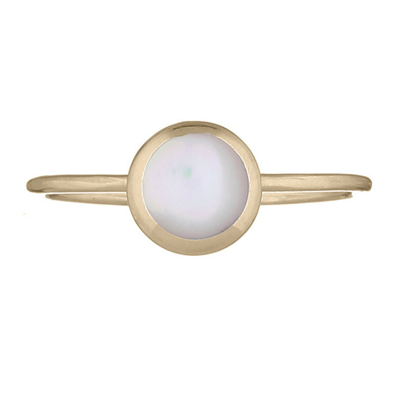 This delicate mother of pearl ring features gold plating for an elegant touch. Retailers can highlight its luxurious look, appealing to customers seeking refined jewelry that enhances their style.