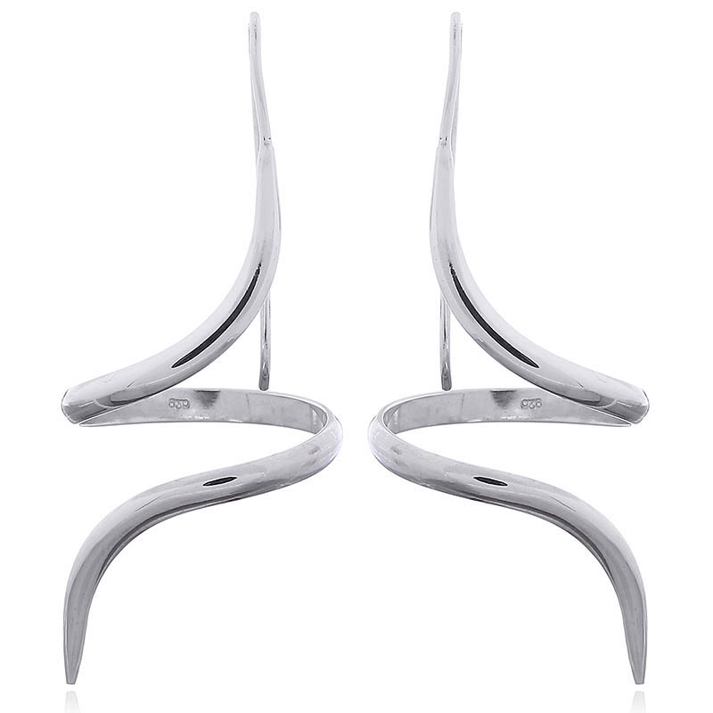 On fixed hooks these stunning pair of Drop earrings feature one rotation of a spiral in an intriguing design that has class. Made from Sterling Silver this pair of earrings are clearly for Ladies that know exactly what they want.