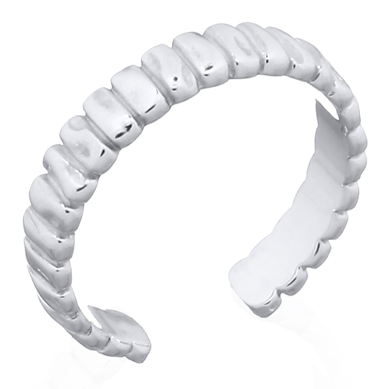 The grosgrain texture on this sterling silver toe ring adds a subtle yet sophisticated detail, making it a versatile piece for any jewelry line. Perfect for retailers seeking unique textures. Enjoy wholesale prices to boost your profits.