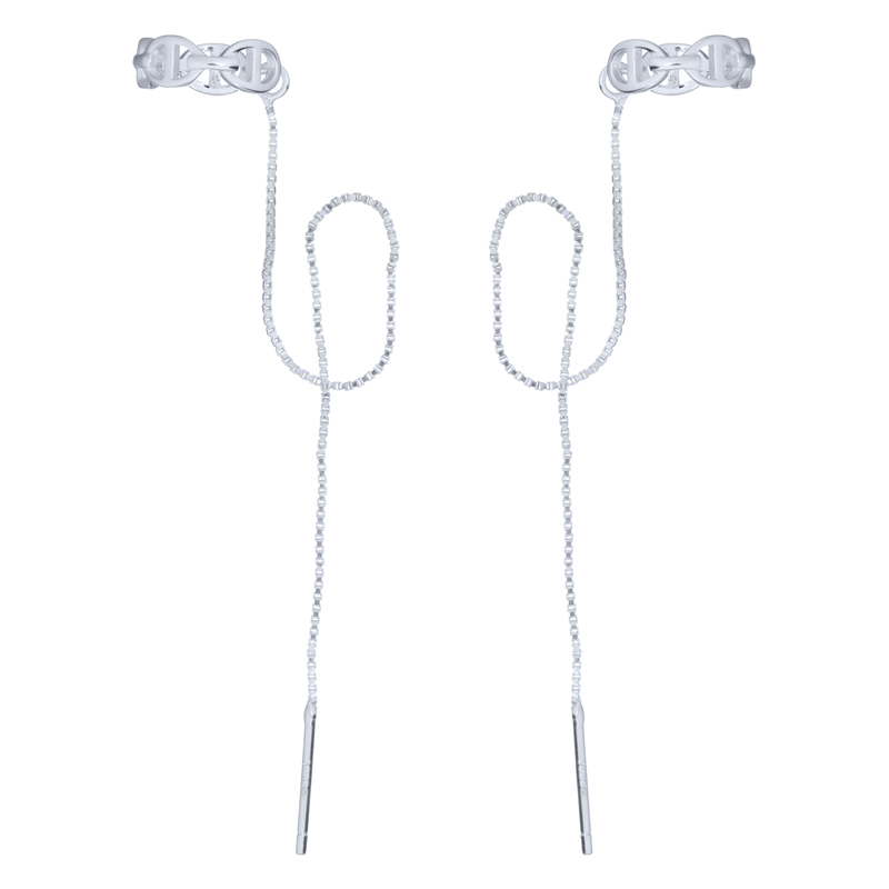 Gucci Link Style Cuff With Long Chain Threader Earrings