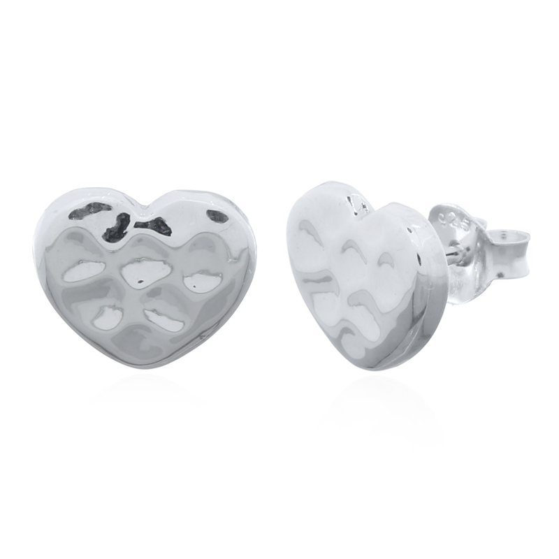 The hammered heart stud earrings offer a rustic yet refined appeal, making them a perfect addition to any jewelry collection. Their classic design and subtle texture cater to customers looking for versatile, heartfelt accessories.