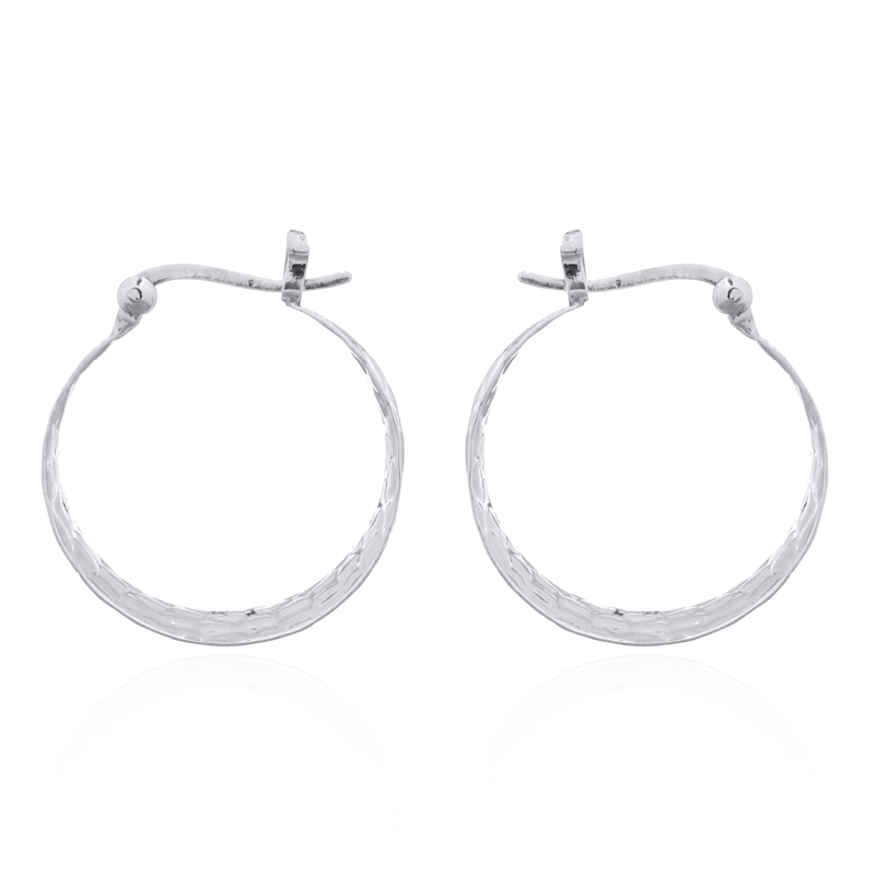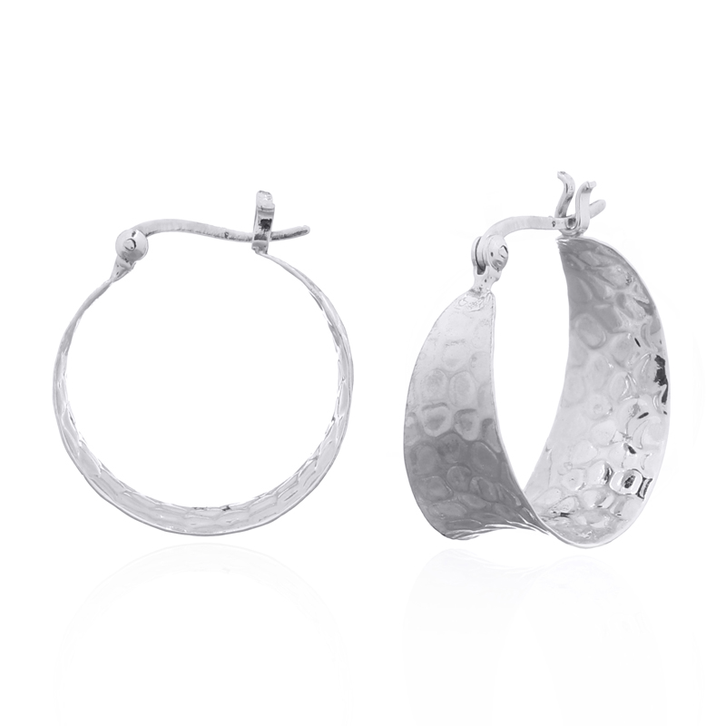 Hammered plain 925 Sterling Silver earrings feature these gorgeous concave tapered Hoops that brings a fabulous pair of bright shiny silver jewelry to the features that radiates a wonderful rich sparkle when the light is reflected and caught on the raised and recessed sections of the hammered surface. Gradually tapering towards the top these Hoop earrings have a delightful width at bottom encircling the earlobes with a luxurious touch. Fastened with hinged secured wires these Hoop earrings won’t get lost easily and keep on going to add their stylish chic to women for years after years after years. . . .
