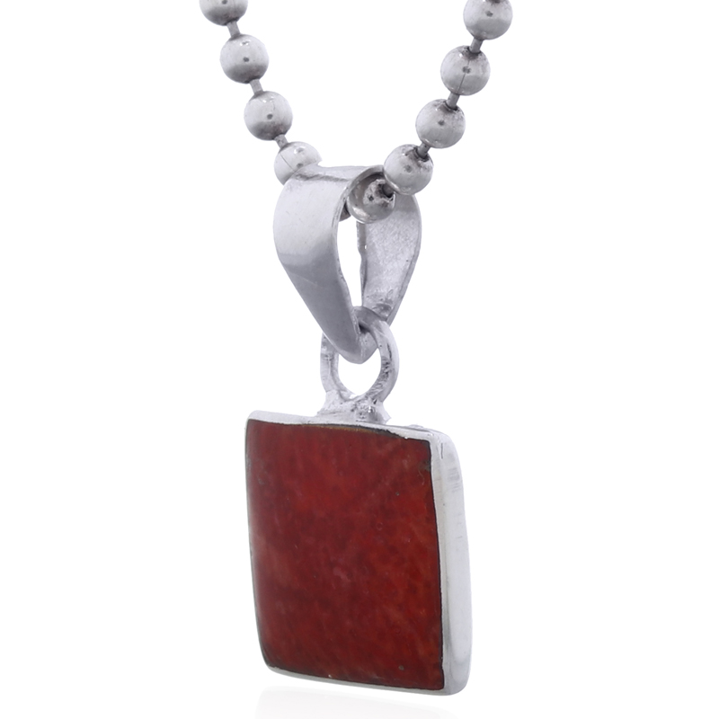 Crafted with genuine 925 sterling silver and a smooth red coral square, this bezel-set pendant delivers artisanal quality and vibrant charm. Retailers can present it as a versatile addition appealing to customers who favor bold yet refined jewelry.