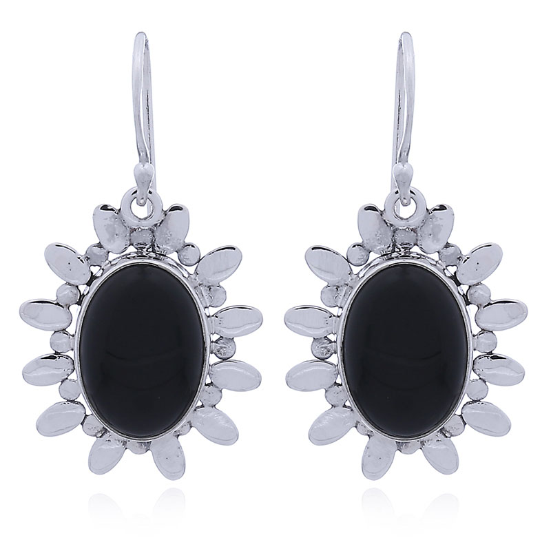 Delicate polished Sterling Silver petals surround the bezel set oval cut Black Agate polished cabochons that remind of flowers. These earrings look beautiful and will take a woman anywhere – the pitch black of the Black Agate gemstone is perfectly framed by the bright silver.