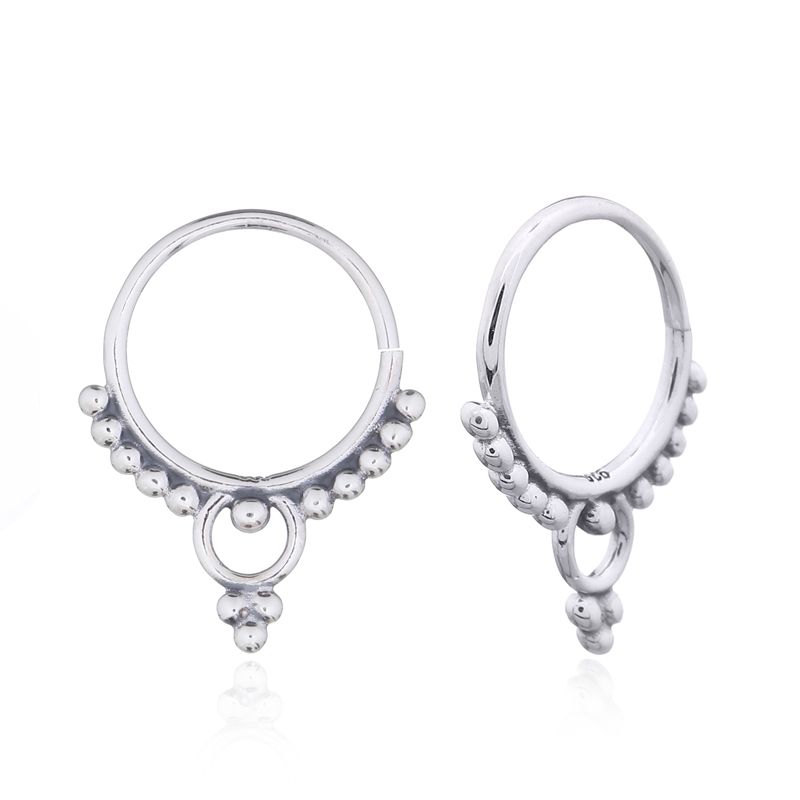 The hanging antique septum rings bring a sophisticated touch to boho-chic accessories. Their classic design is perfect for retailers seeking to offer timeless elegance. Enjoy the added value with our factory pricing.