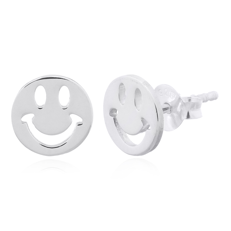 Add a touch of whimsy with these happy face emoji stud earrings in 925 silver. Perfect for brightening up any day. Enjoy our factory pricing for exceptional quality and value.