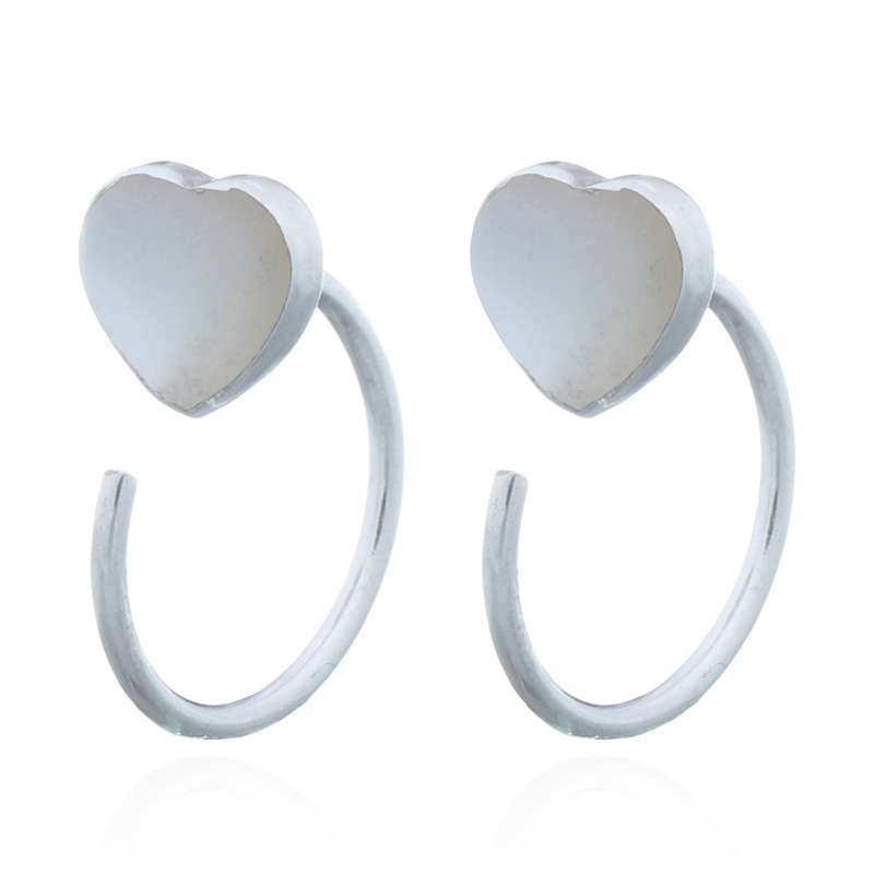 These delightful huggie drop earrings feature heart-shaped mother of pearl, adding an elegant touch to any outfit. Their classic design and lustrous finish appeal to customers seeking timeless and beautiful accessories.