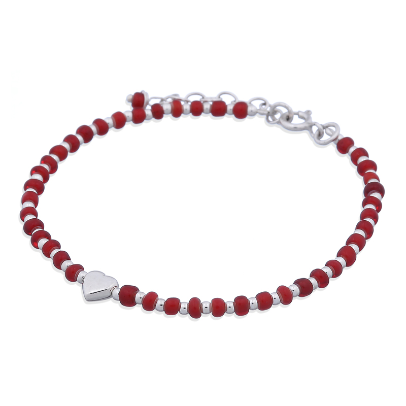 Add a touch of elegance with this unique bracelet featuring heart-shaped glass beads strung on silver chains. Perfect for enhancing any collection. Elevate your inventory with our factory pricing.