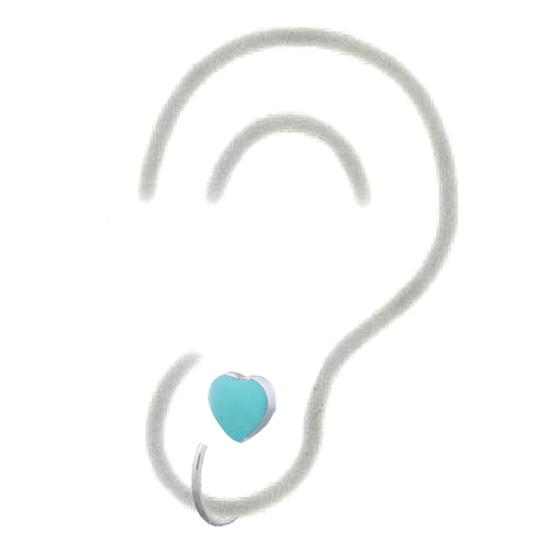 Infuse your collection with these charming huggie drop earrings, showcasing heart-shaped synthetic turquoise stones. Their vibrant color and unique design make them a great option for customers looking to make a bold statement.