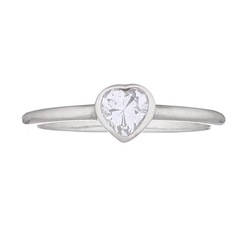 Bezel set clear heart-shaped cubic zirconia in 925 silver sterling ring.