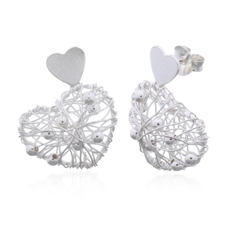 Heart wire thread stud earrings in sterling silver offer a modern, romantic design. Perfect for enhancing any jewelry line. Our products’ unique design and factory pricing ensure great value.
